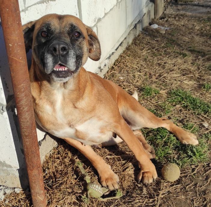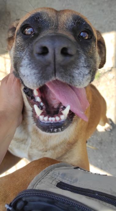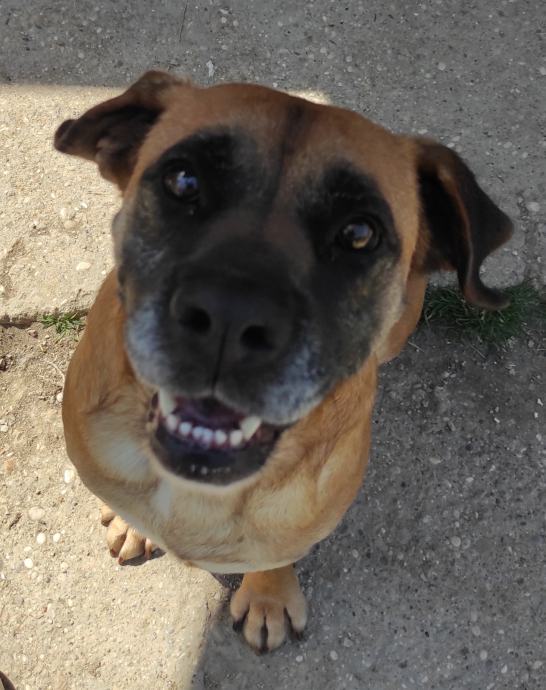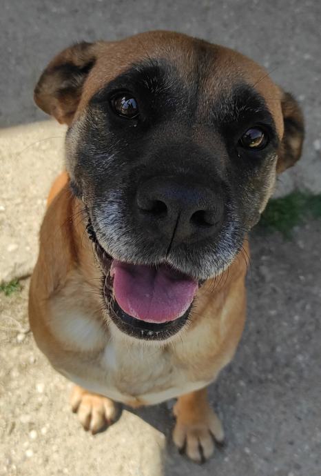 Bounty je kujica rođena u 2. mjesecu 2021. (prema procjeni veterinara, po zubićima) i vjerujemo da u genima nosi nešto pasmine bokser. Bounty je u naše sklonište stigla s još jednim psom, nešto mlađim mužjakom. Oboje su bili iscrpljeni, pothranjeni, preplašeni i tužni, no sada je to iza njih i pokazali su se kao vrlo dragi psi, željni pažnje i ljubavi. Bounty je vrlo privržena kujica, velika je maza i bila bi prekrasna pratiteljica i životna suputnica.