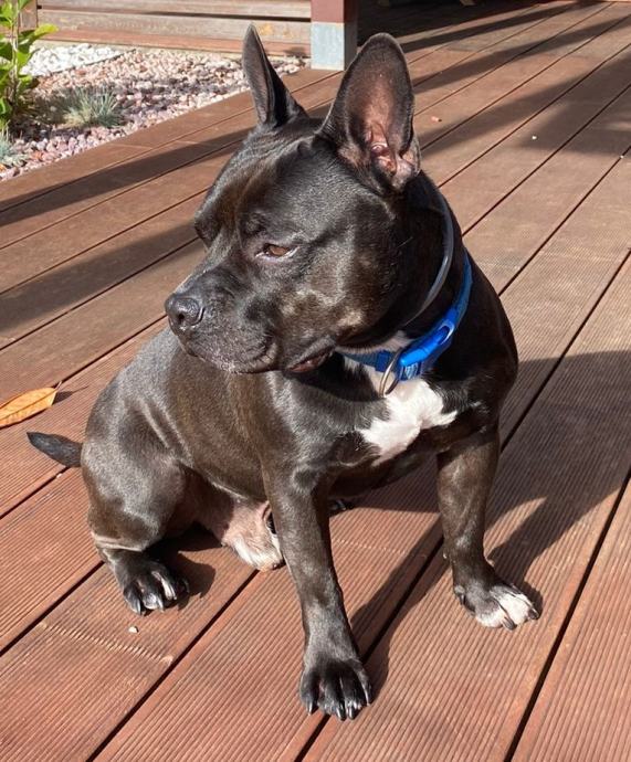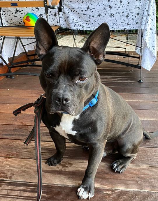 Ovo je Charlie. Charlie je rođen 2018., mix je stafforda i francuskog buldoga. Totalno luda kombinacija, nastala slučajno a ispala zakon. Crno-tamno smeđe boje s bijelim prsima, sa ušima ko šišmiš, nizak a nabijen, vrlo brzo je od nas dobio nadimak piš-miš (pas i šišmiš, jasno).