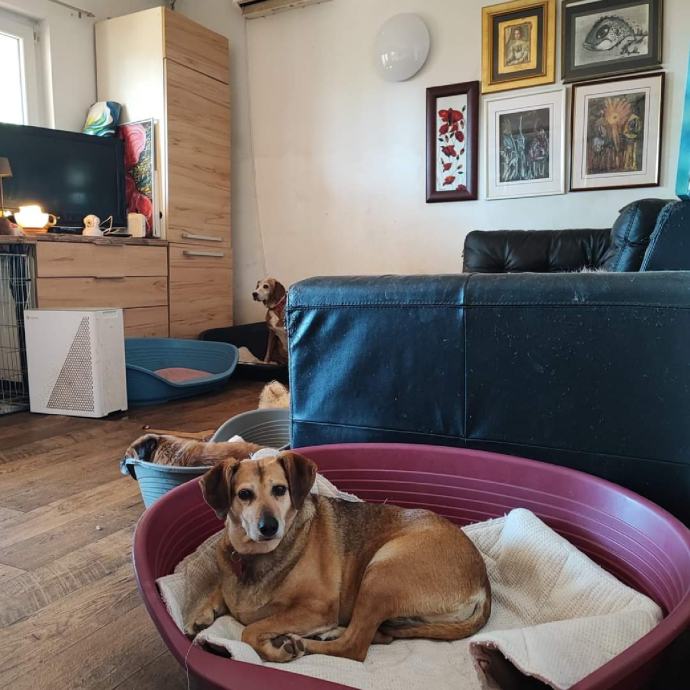 Ona je apsolutno divno biće. Slaže se sa svim živim bićima, nikada je nisam čula lajati, ostaje sama bez problema, ne uništava, nuždu obavlja vani, zdrava, draga, vitalna, ma,... presavršena.