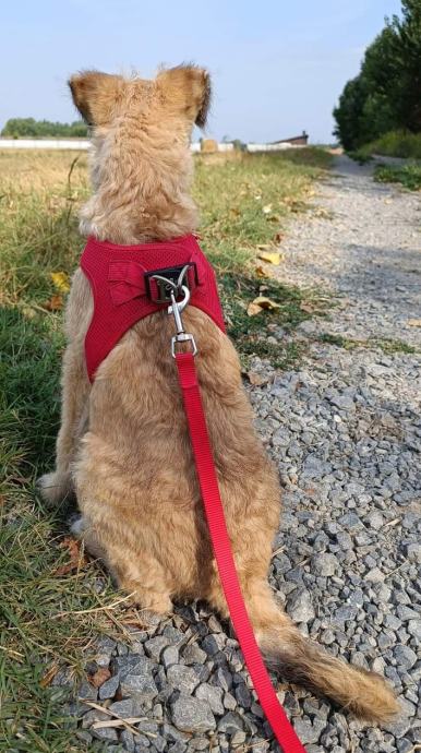 Ova malena slatkica pronađena je napuštena uz cestu u okolici Donjeg Miholjca (na fotkama možete vidjeti kako je izgledala kao mala, malo veća i danas). Bila je bačena s još jednim štenetom koje, nažalost, nije preživjelo. Rođena je u 4. mjesecu 2024. i teška oko 12 kg. Neće više narasti. Slaže se sa ostalim psima, za mace ne znamo. Kao i svi zdravi mladi psi vesela je, vrckava, puna energije i vrlo aktivna curka... Voli se igrati, trčati, voli loptice, igračke... Naučila je lijepo hodati na povodcu i dobra je tijekom vožnje u automobilu. Očišćena je od unutrašnjih i vanjskih nametnikam cijepljena i čipirana te kastrirana.