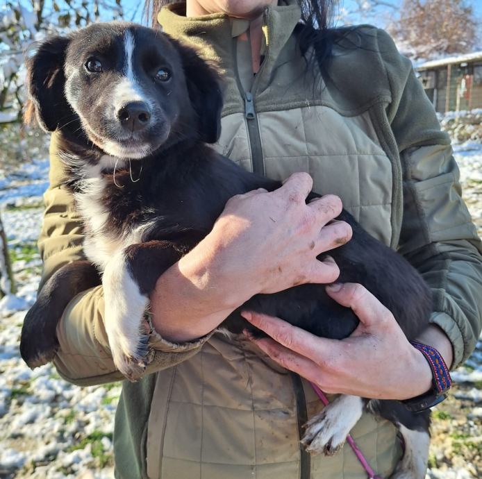 Ova dražesna mala curka traži svoje mjesto pod suncem! Rođena je u 9. mjesecu 2025. Kao i svi štenci, zaigrana je, gricka, istražuje, ne zna kućni red ni što je lajna, tako da udomitelji moraju biti spremni raditi s njome i naučiti ju svemu što treba. Malena je mješankica, stigla je u sklonište zajedno s mamom (mješanka malog rasta) i očekujemo da će u odrasloj dobi biti manjeg rasta.