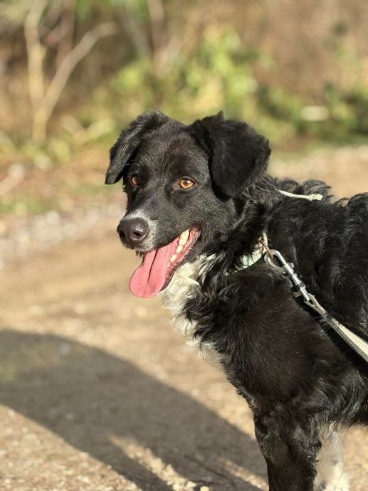 Hugo je krasan, simpatičan mužjak spašen od lutanja i svih opasnosti s kojima se psi koji su prepušteni ulici susreću (glad, žeđ, promet, loši ljudi koji ih truju, pucaju u njih i tome slično). Pojavio se u jednom selu u Slavoniji zajedno s još dva psa. Držali su se zajedno nastojeći preživjeti. Zajedno su i spašeni, zahvaljujući empatiji nekoliko dobrih ljudi. Prema procjeni veterinara rođen je u 10. mjesecu 2024., težak je oko 16 kg i srednje je velik. Teško je davati točne procjene o genetici, no moguće je da u sebi nosi nešto gena border kolija i retrivera. Inteligentan je, znatiželjan... Lijepo se slaže s ostalim psima na smještaju i dobar je i prema macama i štencima. Hugo je mladi pas s kojime treba raditi, učiti ga svemu što jedan pristojan pas treba znati. Sklon je bježanju preko ograde i jako se boji grmljavine pa treba jako paziti da ne pobjegne za vrijeme nevremena. Isprva, dok ne upozna čovjeka, pomalo je plah, oprezan i sramežljiv.