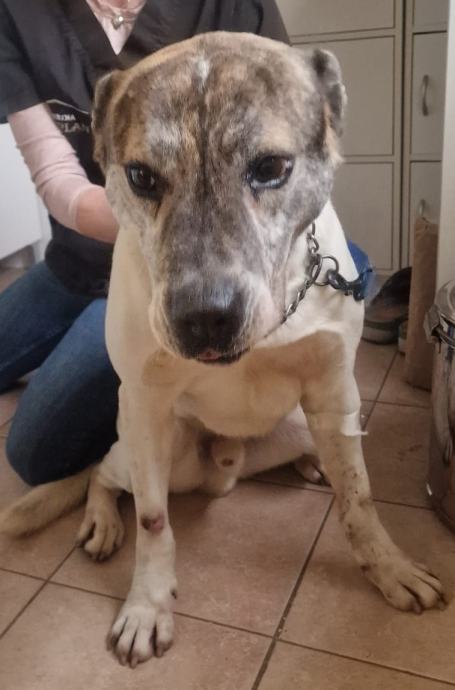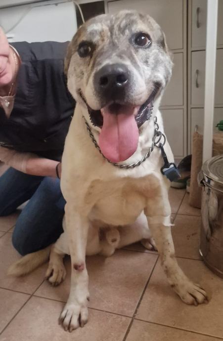 Ova njuška zove se King. Rođen je u 11. mjesecu 2019., težak 29 kg. U studenome 2023. prebačen je na privremeni smještaj. Do tada dane i noći provodio je ovako kako vidite na nekoliko posljednjih fotografija, u malenom sklepanom boksu iz kojeg je rijetko bivao pušten. Do svibnja 2023. godine imao je, recimo, skrbnika, starijeg čovjeka koji je tada morao biti smješten u dom. Nažalost, čovjek nije previše brinuo o njemu, no ipak je imao redoviti obrok i katkad šetnje izvan ovog kaveza u kojemu je bio kao živ zakopan. Kao u zatvoru, a kriv ni za što, King je tako životario, ležao na zemlji okružen fekalijama. A drag je i dobar, veseli se ljudima i svakom dodiru i pogledu. Susretljiv je, rado uči i vrlo je poslušan i fokusiran na čovjeka. Veličine je otprilike poput labradora, snažan je i voli juriti kad je slobodan. Na povodac je navikao, ali sluša i bez njega. S drugim psima se nije puno družio jer ih u mjestu u kojem je bio baš i nema mnogo (istok Slavonije, pokraj Iloka), a ionako je bio uglavnom u boksu, međutim na smještaju se jako lijepo druži i igra sa ostalim psima razne dobi, i mužjacima i ženkama. Prema macama (koje ne bježe od njega) ima respekta i ne dira ih. Nije za suživot s kokama.