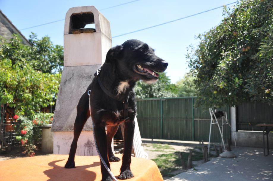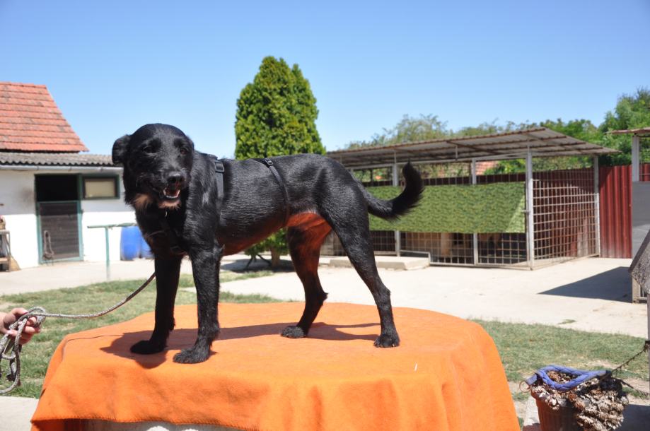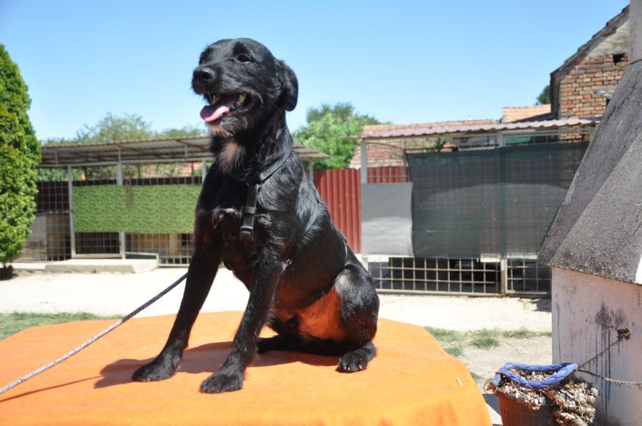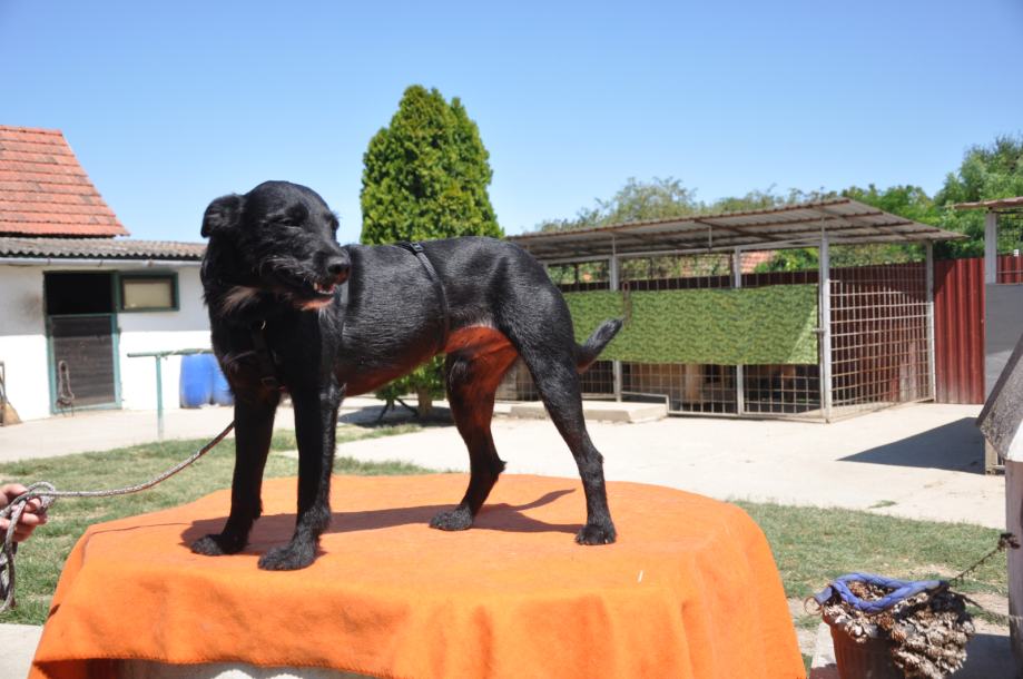 Pronađen kao štene 5 tj. starosti s bračom i sekama, cijepljen virusne bolesti i bjesnoču, kastriran. Mali pas srednje veličine oko 30 cm. Veseo aktivan mladi pas sa specifičnom šarom na prsima i bradi. Udomljuje se uz ugovor i provjeru uvjeta. Može se dogovoriti i prijevoz.
