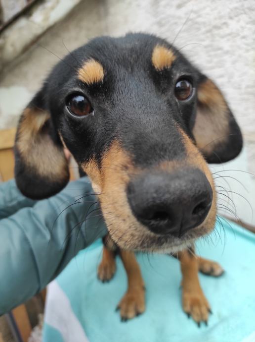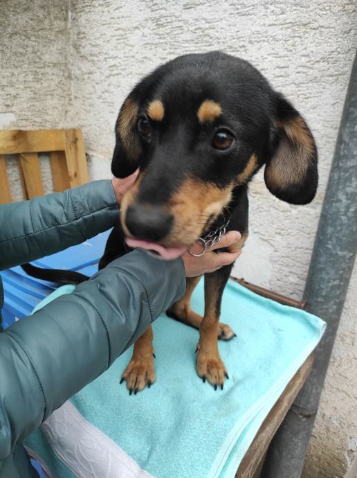 Ovaj maleni šarmer vjerojatno je mješanac jazavčara na malo dužim nožicama, rođen, prema procjeni veterinara, u siječnju 2025. Težak je oko 12 kg. Neko je vrijeme lutao manjim mjestom u okolici Vinkovaca, snalazio se po ulicama sela, gdje su mu ponekad ostavljali koji zalogaj, no uglavnom su ga ignorirali ili ga tjerali. Na kraju se najviše zadržavao uz mjesnu školu, gdje su ga djeca prigrlila i on im se jako veselio. Spašen je zahvaljujući trudu gospođe koja ga je primijetila i ostavljala mu hranu te obavijestila lokalne volontere. Maleni je dobio ime Liam, prijavljen je u nadležno sklonište gdje je primio obavezno cjepivo protiv bjesnoće i čipiran je. U međuvremenu je primio i cjepivo protiv zaraznih bolesti i kastriran je. Sada živi na privremenom smještaju s još nekoliko njuški, i ženki i mužjaka, različite dobi i veličina. Vesele je naravi, vrlo otvoren i prijateljski raspoložen prema ljudima. Lajne i ogrlice se još malo boji pa će trebati poraditi na tome da prevlada taj strah, stoga bi bilo dobro da osoba koja ga želi udomiti ima strpljenja, ali i iskustva sa psima.