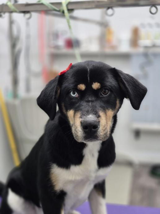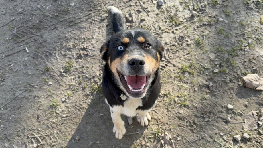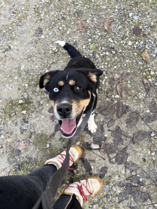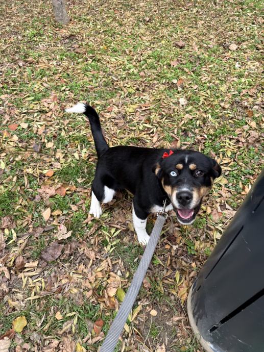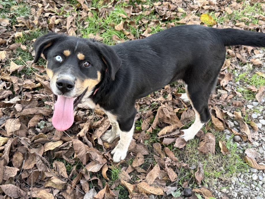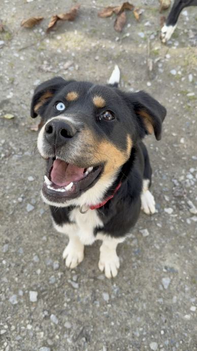 Nora je mješanka predivnih različitih očiju, stara oko 8 mjeseci, te će biti srednjeg rasta (trenutno velicine do koljena).
