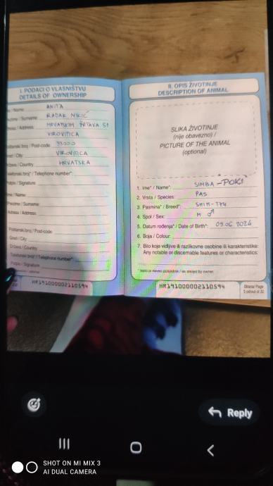 Budući da mi je sin alergičan na životinjsku dlaku moram predat psa. Pas je naučen na ponašanje u kući i željela bi da ga uzme netko tko će ga voljeti i paziti. Cijena je 100 eura. Potrebno je doci po njega.