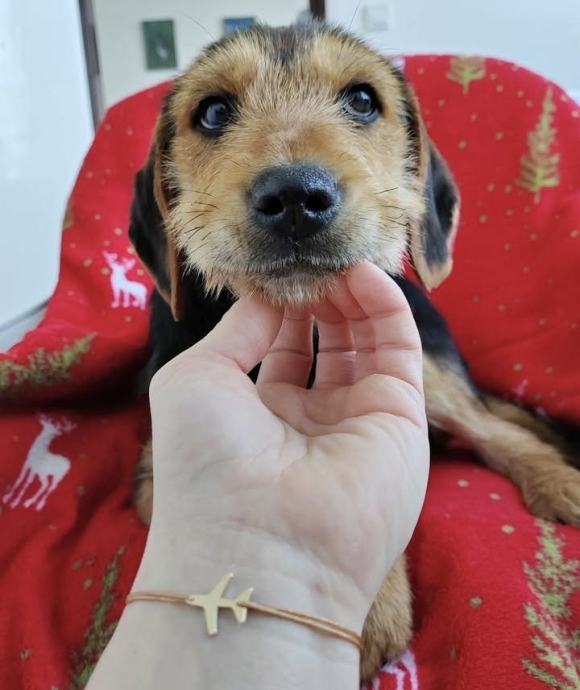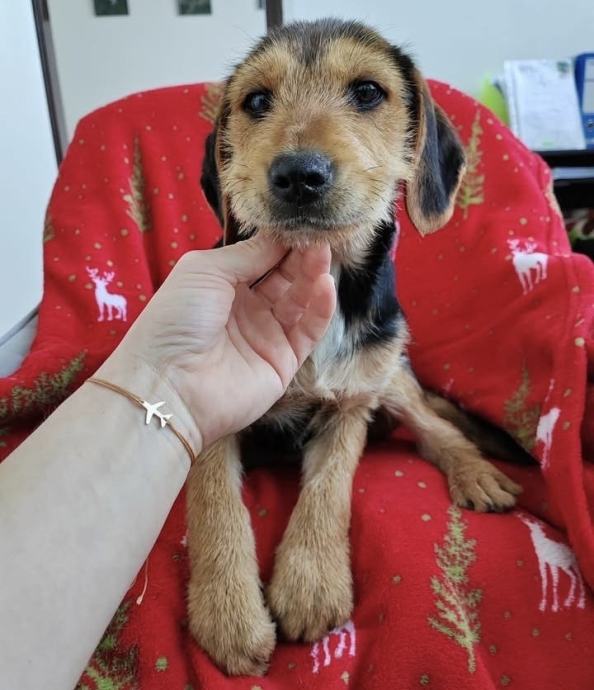 Muško je štene, oko dva ili tri mjeseca stara, mješanac u tipu lovačke pasmine, trenutno težak oko 6 kg, a očekivanni rast je srednji, oko 20 kg. Ima EU putovnicu, čip, primio je cjepivo protiv zaraznih i očekuje ga cjepivo protiv bjesnoće, koje je za njega u skloništu besplatno, isto kao i kastracija pri spolnoj zrelosti.