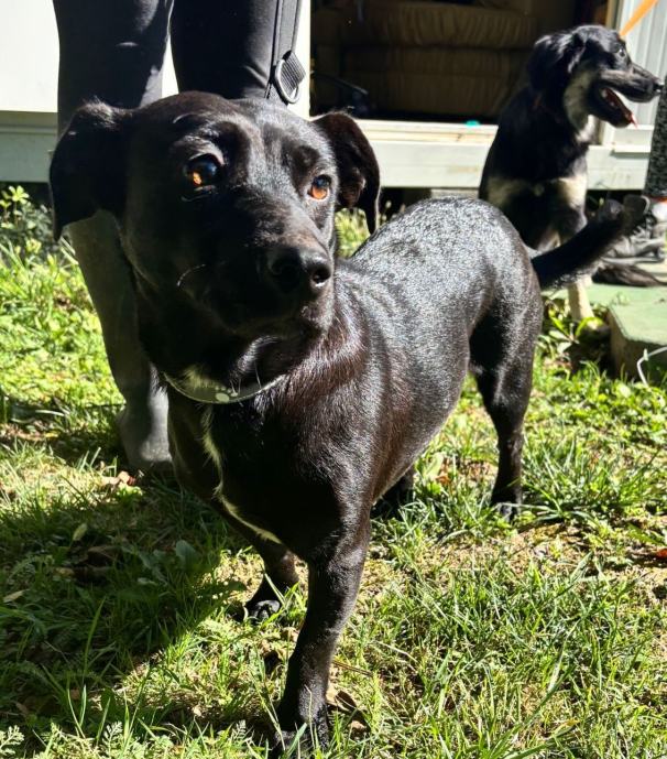 Perlica je ženkica koja je spašena kao odbačena. Pojavila se na jednom slavonskom graničnom prijelazu, u društvu još jednog psa, mladog mužjaka. Držali su se zajedno nastojeći preživjeti. Zajedno su i spašeni, zahvaljujući empatiji nekoliko dobrih ljudi. Prema procjeni veterinara rođena je u 3. mjesecu 2024., teška je oko 10 kg, na nižim nožicama, manjeg rasta. Perlica dobro funkcionira s drugim psima na privremenom smještaju, no ponekad voli pokazati da je šefica. Na mace ne reagira dobro i naganja ih ako je u prilici, tako da za nju tražimo dom bez maca i ostalih malih životinjica. Ona je još mladi pas s kojime treba raditi, naučiti je svemu što je potrebno za ugodan suživot.