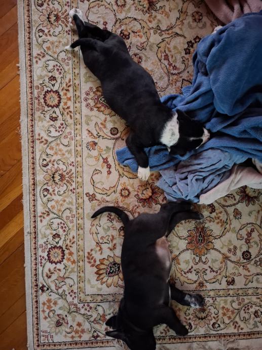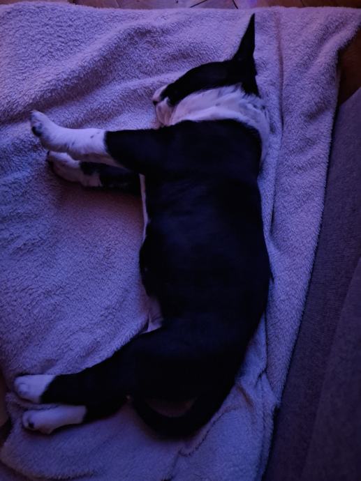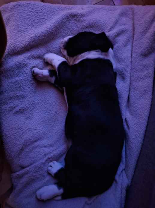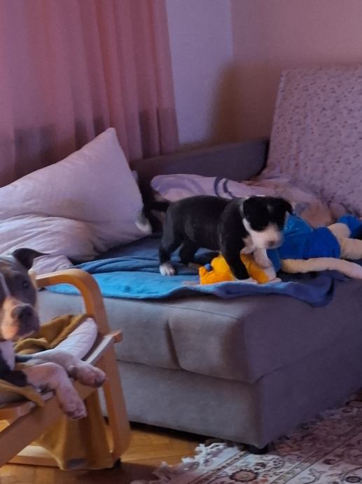 Poklanjam žensko štene, mješanka, majka je čistokrvna Američki stafordski terijer, rođena je 01.11. Očišćena od svih parazita, čuvana, mažena i pažena. Traži dobre ruke koje će usrećiti, ako ste ju pomislili staviti na lanac da čuva dvorište molim Vas da preskočite ovaj oglas, razmazila sam ju za svaki slučaj da vam to ne pođe za rukom. Tata je veći, crno bijeli malo duže dlake, jednom sam ga vidjela u životu pa ne očekujte bolji odgovor od ovoga. Ukoliko se nađe koja dobra duša koja traži psećeg prijatelja može nazvati na WhatsApp na 0912912994.