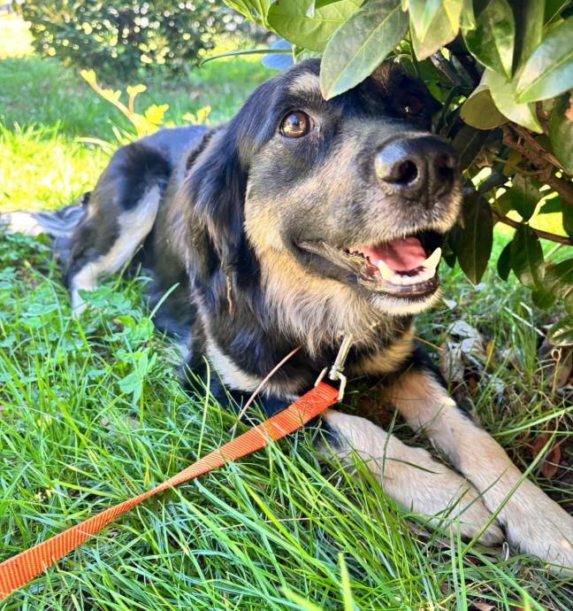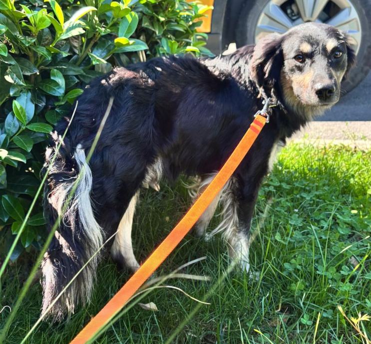 Pollo je jako zgodan i simaptičan mužjak spašen od lutanja i svih opasnosti s kojima se psi koji su prepušteni ulici susreću (glad, žeđ, promet, loši ljudi koji ih truju, pucaju u njih i tome slično). Pojavio se na jednom slavonskom graničnom prijelazu, u društvu još jednog psa, malene kujice. Držali su se zajedno nastojeći preživjeti. Zajedno su i spašeni, zahvaljujući empatiji nekoliko dobrih ljudi. Prema procjeni veterinara rođen je u 8. mjesecu 2024., težak je oko 13 kg i srednje je velik. Pollo je jako mazan, dobar, strpljiv pas, koji se lijepo slaže sa ostalim psima na smještaju i dobar je i prema macama. On je mladi pas s kojime treba raditi, učiti ga svemu što jedan pristojan pas treba znati. Trebat će ga polako i strpljivo učiti na hodanje na lajni, jer nije navikao na to, posebno u gradskom okruženju, uz buku prometa.