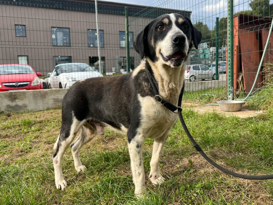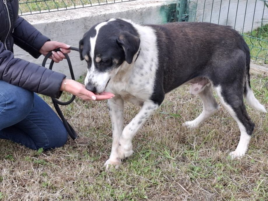 Razer je miran pas, odličan za lagane šetnje, dobre naravi, slaže se sa drugim psima. Ima 9 godina, 28 kg i 50 cm.