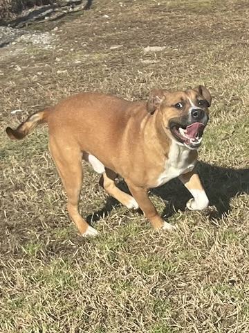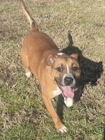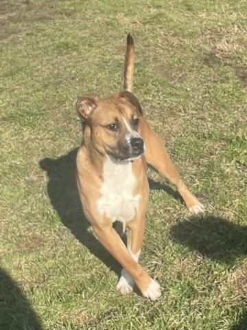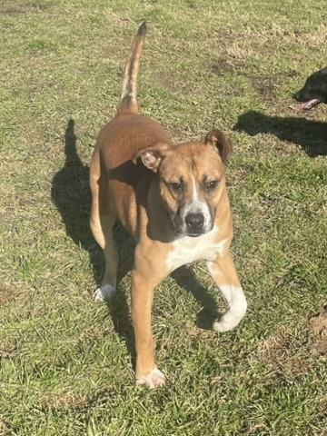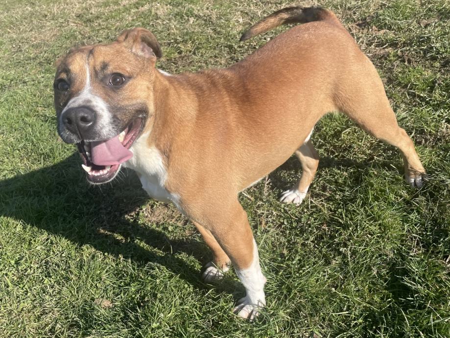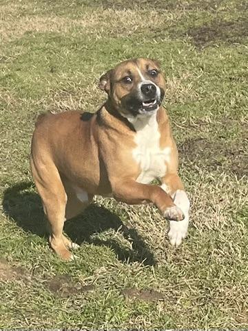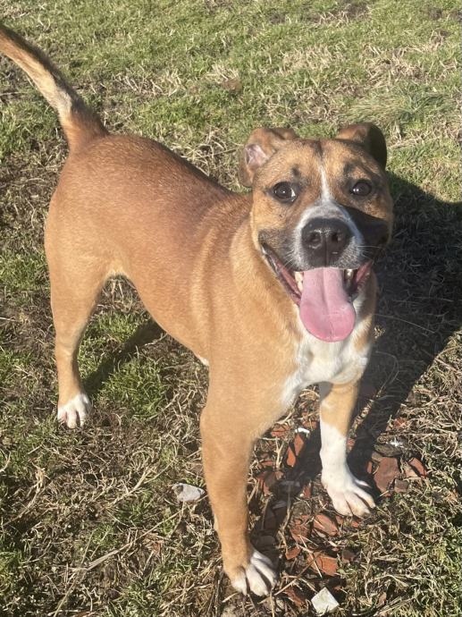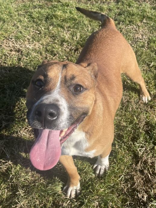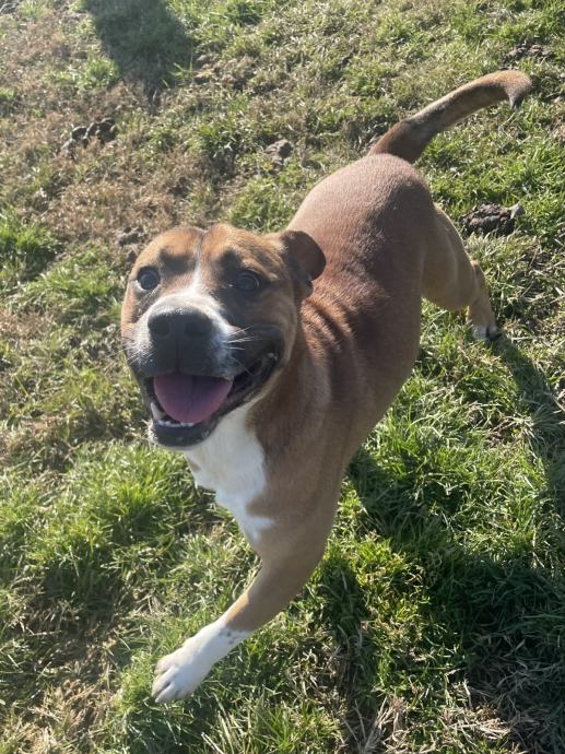 Rex je mužjak u tipu staforda, star je oko godinu dana, izvučen iz skloništa. Rex je super s drugim psima, ni na mace ne reagira, nema ni malo agresije, jedino voli kao štenci grickati stvari pa budući udomitelj mora pripaziti na to da ne uništi nešto vrijedno.