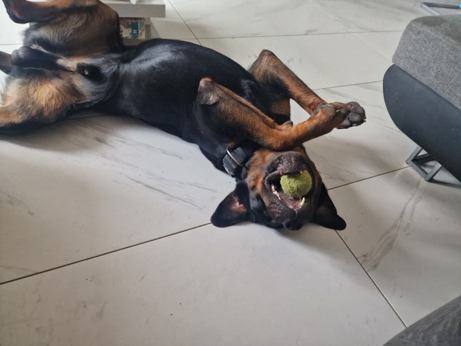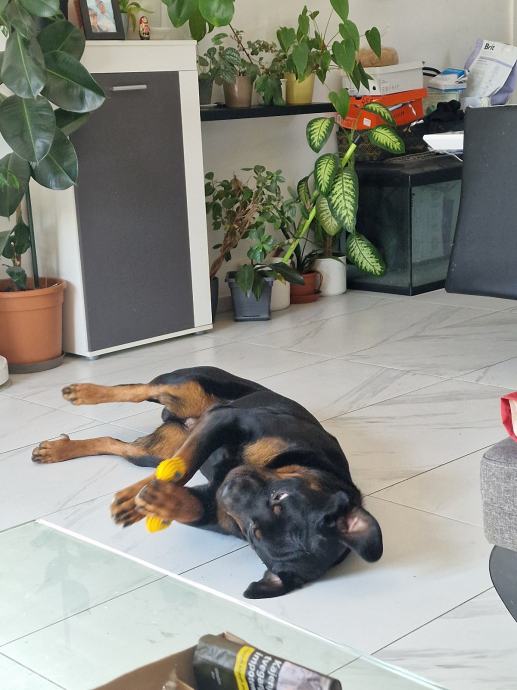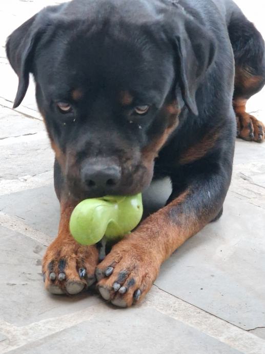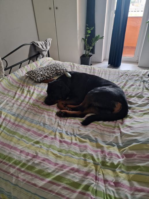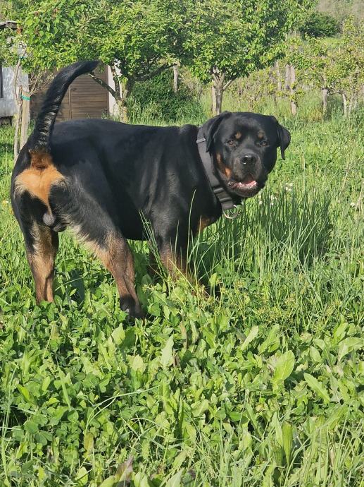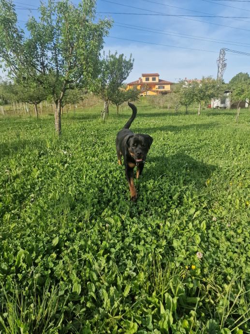 Zbog alergije naše bebe na pseću dlaku, iznajmljujemo trogodišnjeg rotvajlera.