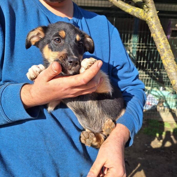 Ova dražesna mala curka traži svoje mjesto pod suncem! Rođena je u 8. mjesecu 2025. Kao i svi štenci, zaigrana je, gricka, istražuje, ne zna kućni red ni što je lajna, tako da udomitelji moraju biti spremni raditi s njome i naučiti ju svemu što treba. Malena je mješankica, stigla je u sklonište zajedno s mamom (mješanka malog rasta) i očekujemo da će u odrasloj dobi biti srednje velika kujica.