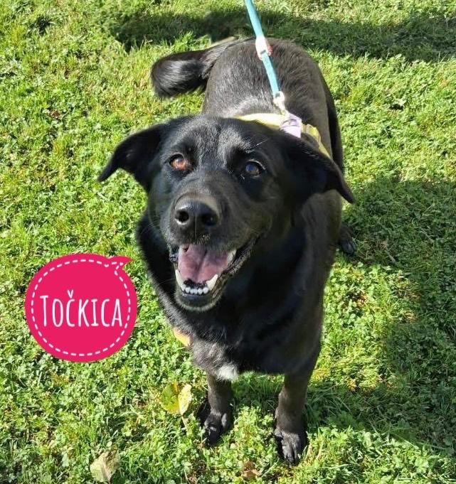 Točkica je kao što vidite pas neodoljivog osmijeha, koja svojom dobrotom svakom čovjeku uljepša dan. Unosi pozitivnu energiju među pse i ljude, one male i velike. Umiljata je mješanka labradora, teška 30 kilograma, oko pet godina ima i sigurno još desetak godina može biti nekome vjerna prijateljica. Obavila je cjepivo i dobila čip.