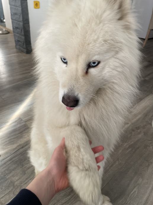 Poklanja se mužjak samojeda, star je 5 godina. Nažalost zbog životnih okolnosti selidbe u stan ga nismo u mogućnosti više zadržati. Tražimo siguran dom Oskaru i nekoga tko će imati volje brinuti se o njemu. Redovno je cijepljen, čipiran, prima redovno tablete protiv parazita, kastriran je. Oskar je jako velika maza, ali je još uvijek razigran i voli skakati, ima puno energije i treba mu netko tko će imati autoritet i tada će slušati. Bilo bi poželjno da ga udomi netko s aktivnijim životnim stilom ili velikim dvorištem. Nije agresivan, voli ljude na prvu laje na nepoznate, ali sa svima se sprijatelji. Drugih pasa se uglavnom boji, nije u susretu s njima agresivan. Djecu voli kao i sve ostale ljude. Kod nas je često na ogradi i tako je stekao brojne prijatelje - prolaznike. Ne voli biti sam, jako je privržen uz ljude i obožava se maziti i igrati lopticom. Nalazmo se u Novskoj.