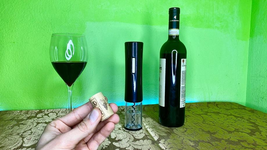 Elektricni otvarac za vino, koji samo sa pritiskom na tipku sve radi automatski i kroz par sekundi izvlaci vadicep van iz boce, bez imalo napora. Radi na baterije i prenosiv je posvuda. Kad ste izvadili cep automatski ga izbacuje van pritiskom na drugu tipku.
