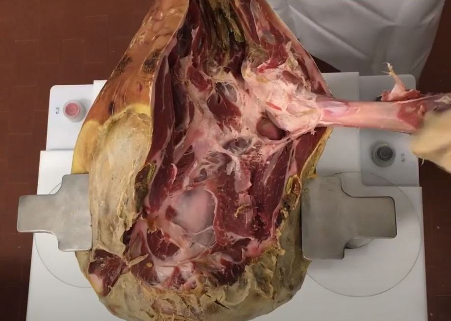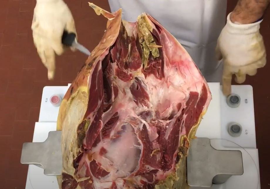 Mašina za iskoštavanje pršuta s potiskivačem ispod