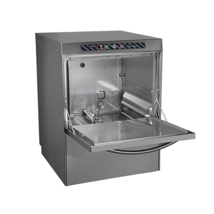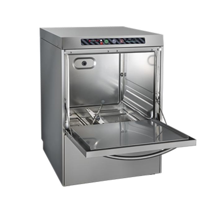 Ove perilice posuđa izrađene su od visokokvalitetnog AISI 304 nehrđajućeg čelika i dizajnirane za vrhunsku učinkovitost i dugotrajnost. Dvostruki zidovi, neovisni sustav ispiranja i pranja, te atmosferski bojler osiguravaju savršenu higijenu i uštedu energije.