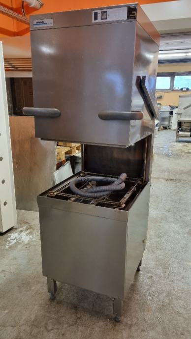 Profesionalni pomivalni stroj za posodo Winterhalter GS 502, korpa 50x50cm, dvižni, s havbo, čas pranja 1 ili 2 minute, veoma malo korišten, očuvan kao nov, servisno pregledan, povoljno, prodajem! Avtomatsko doziranje detergenta i sijaja. Posjetite moju Njuškalo trgovinu! Cena 2990 eur