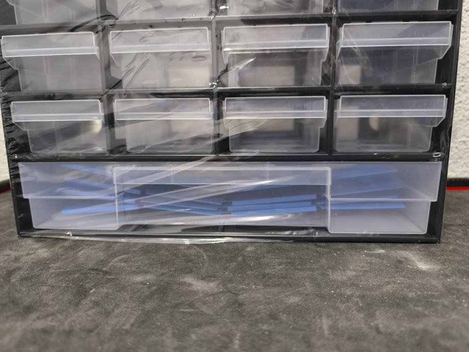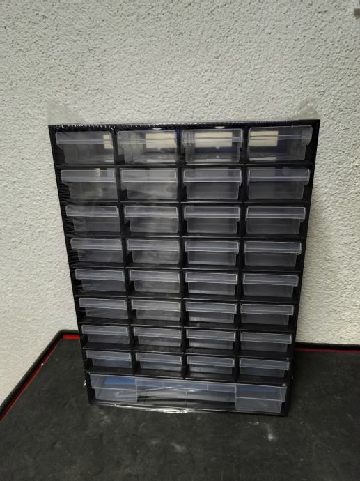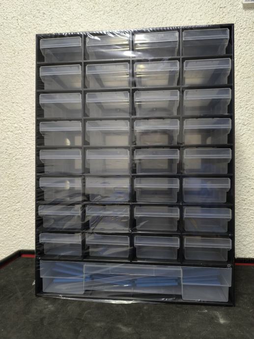 Novo i nekorišteno... Još u foliji. Za sitne stvari... Donja ladica je jedino široka koliko i sam ormarić. Plastika..