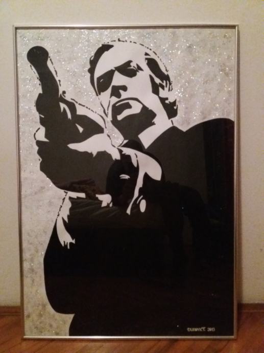 Format 70x100 cm, dizajner Tomislav Đurović, kombinirana tehnika - tuš, akril i gliteri na umjetničkom papiru.