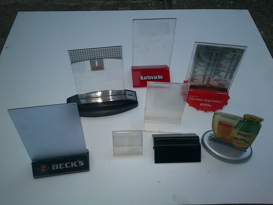 stalci za cjenike , imam jos neke modele koji nisu na slici , cijena od 10 - 25 kuna komad .....imam i stalak za prospekte i slicno..... 092 2971 713