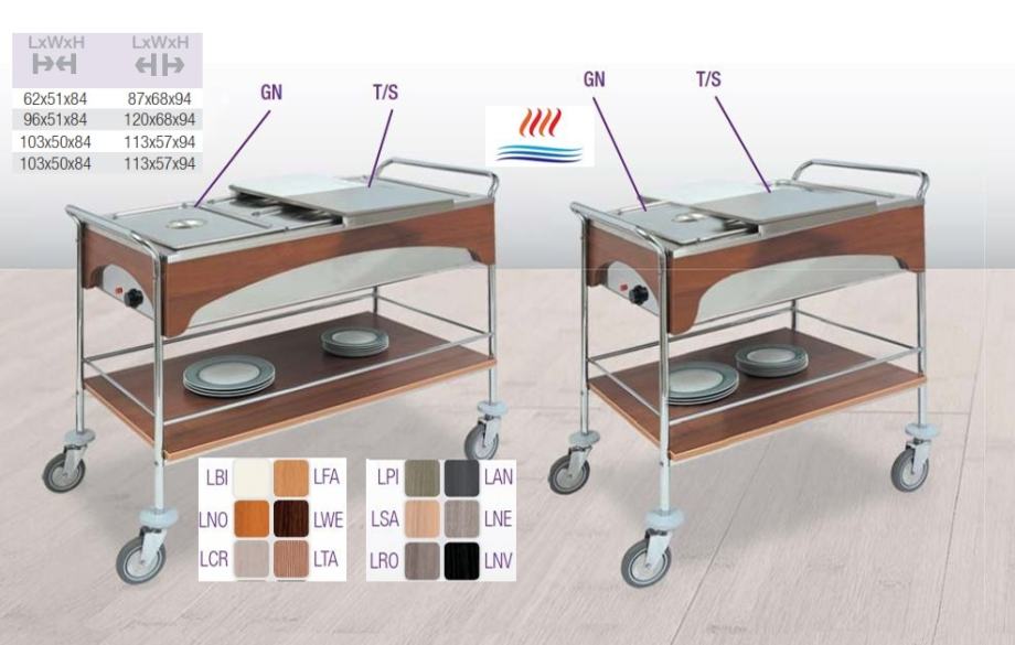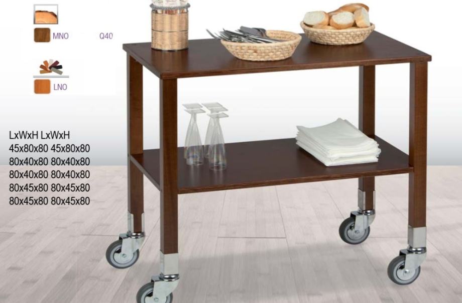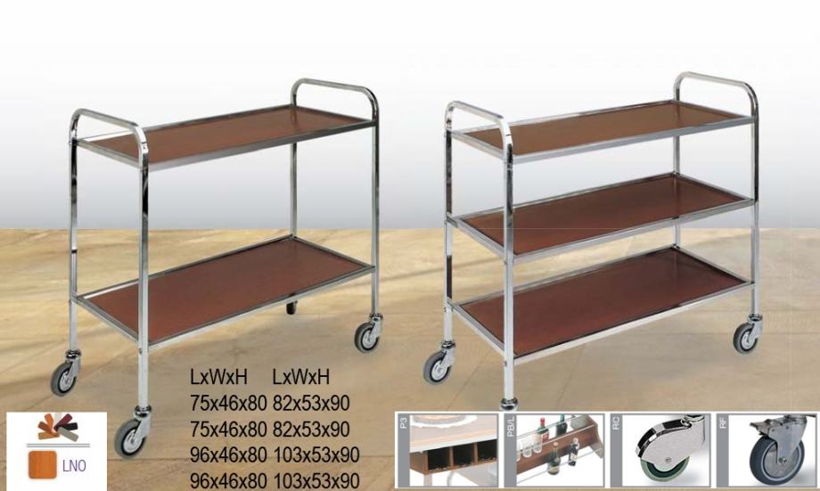 Ugostiteljska kolica za serviranje i posluživanje, raznim dimenzija i materijala, metalna, od rostfreia ili drvena,