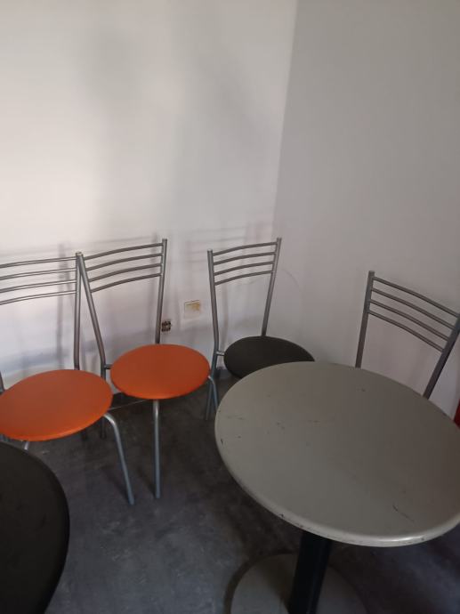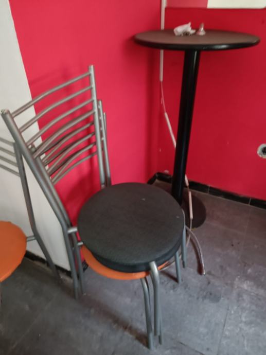 10 stolica, dva barska stola i tri okrugla manja stola (malo oštećena). Stolci su u dobrom stanju