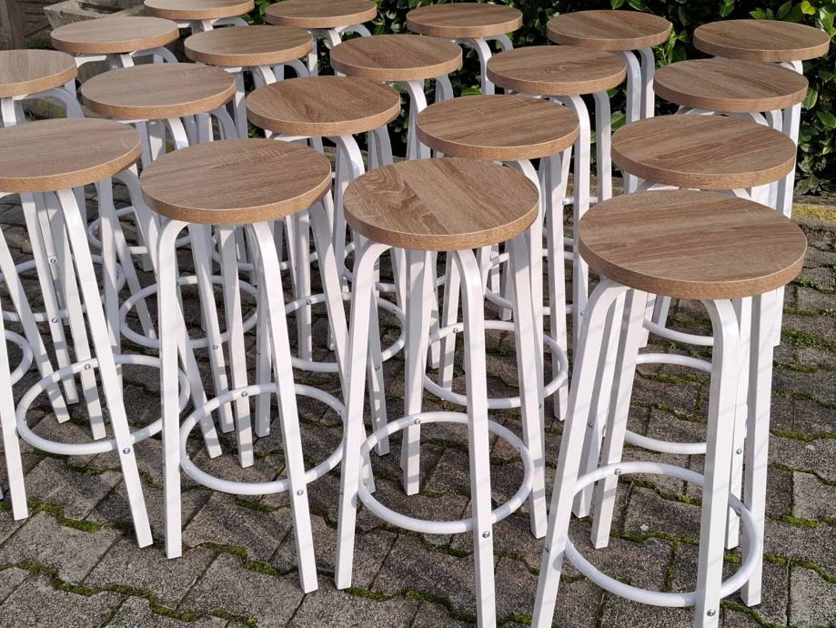 prodaju se 32 barske stolice ...tip-top stanje(nema vidljivih tragova korištenja kao Nove)metalne noge/gazište - drveno sjedište
