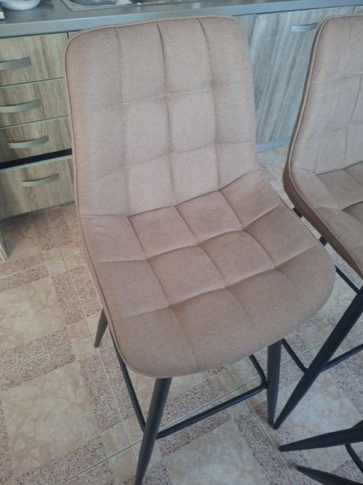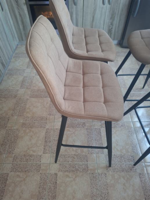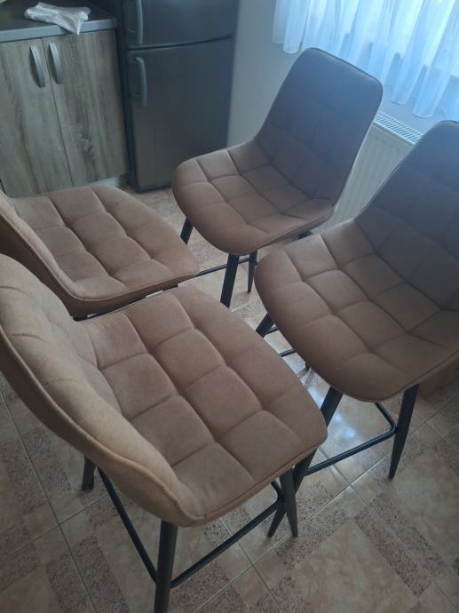 Četiri barske stolice, nove i nekorištene, smeđe boje.