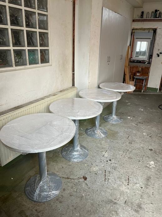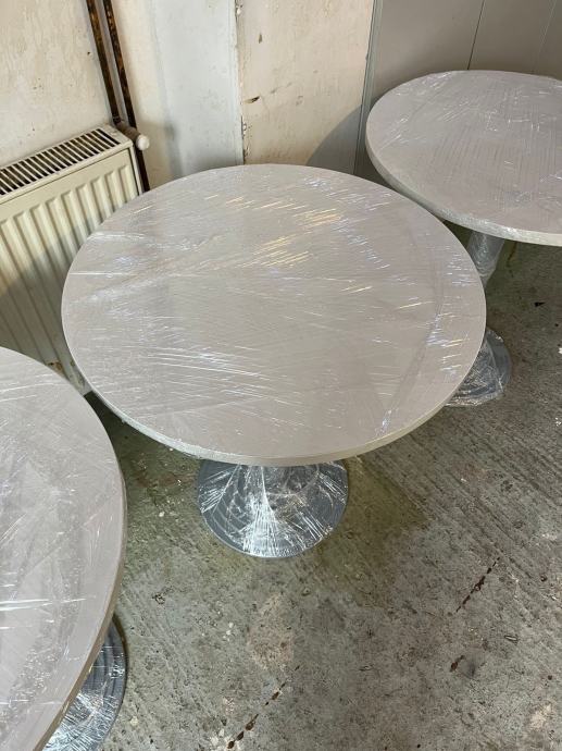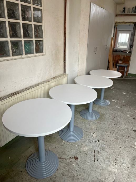 Novi barski stolovi visine 73 cm, promjer drvene ploče 70 cm, debljine 2,5 cm.