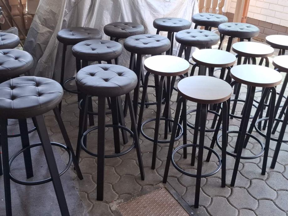 prodaje se 34 barskih vintage-pub stolica...metalne noge/gazište-tapecirano sjedište (visina 75cm - fi 36cm)