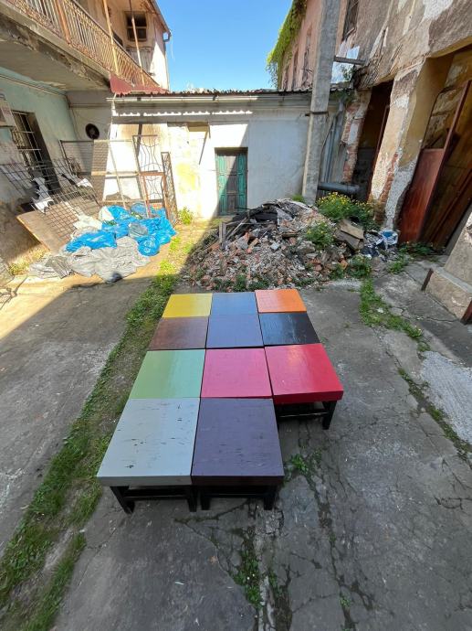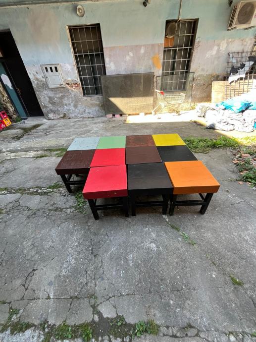 Niski stolići raznih boja. Drveni. Očuvani i friško prefarbani.