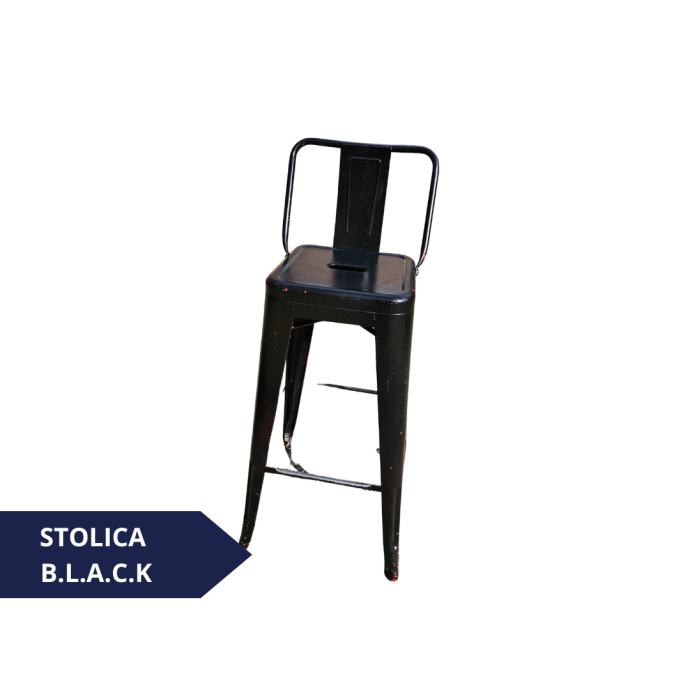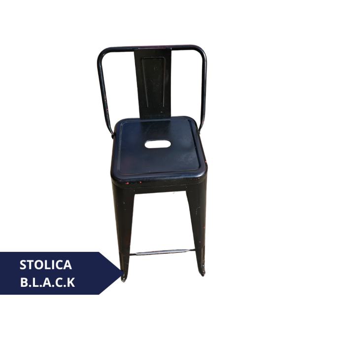 Izvrsne barske stolice za restoran ili neku drugu namjenu. Crna elegantna metalna stolica s naslonom. Preporučljivo stavljanje jastučića kao na fotografiji.