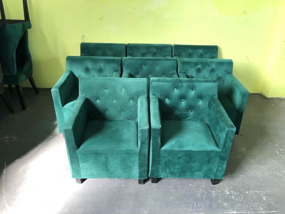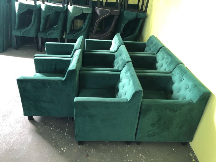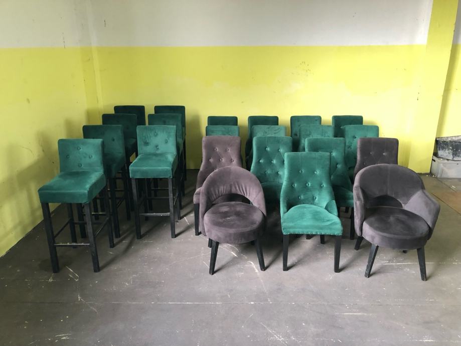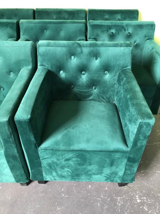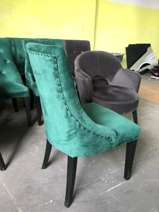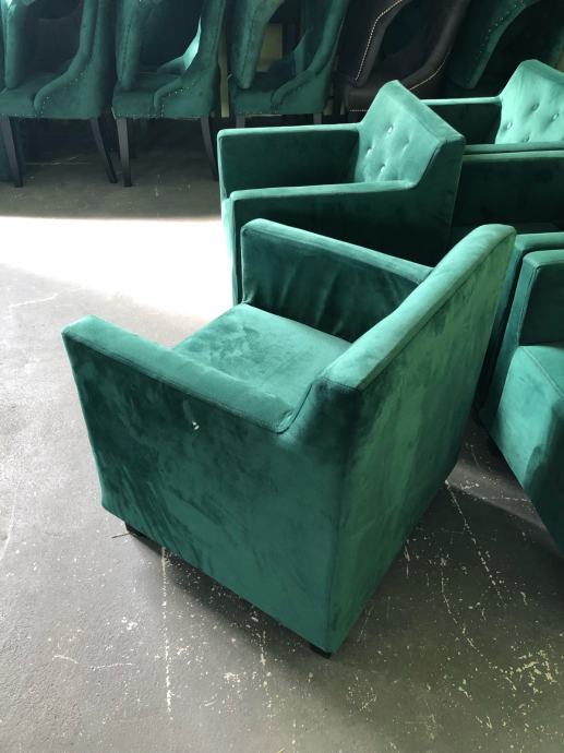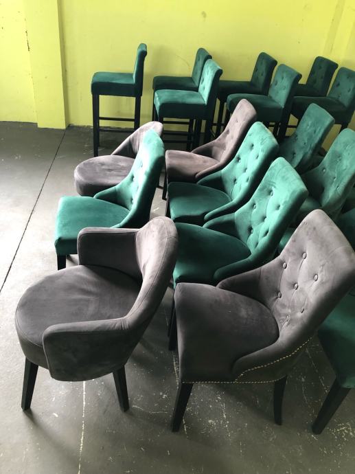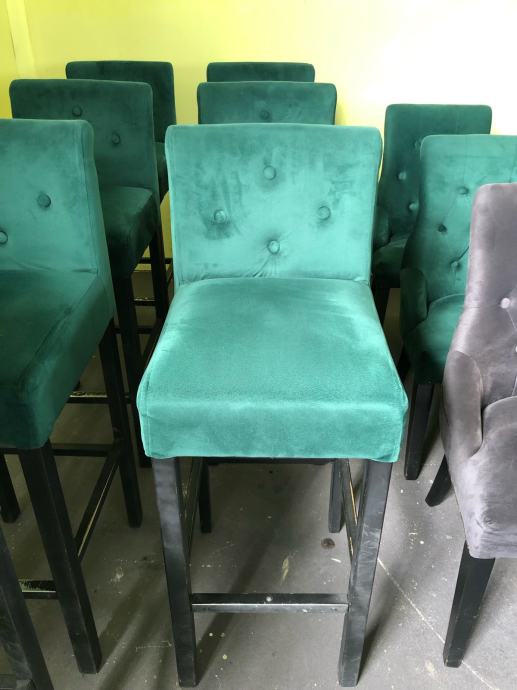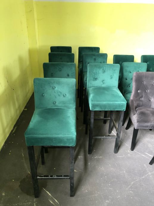 Stolice za ugostiteljstvo kafić/restoran ili neke druge vrste objekata, vrlo kvalitetne u tamno zelenoj kombinaciji, dostupno 3 kom niskih stolica te 4 fotelje, sve je jako uscuvano te koristeno 5mj. Cijena po komadu 130€.