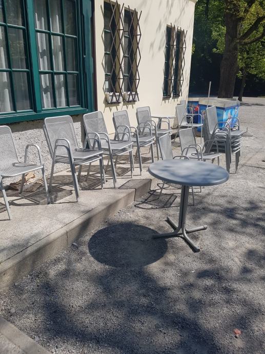 Stolice metalne za terasu 250 kom. u odličnom stanju. Cijena 200 kn/kom. Uz stolicu uključen i jastuk. Moguće uzeti i stolove. Ostalo nakon zatvaranja lokala.
