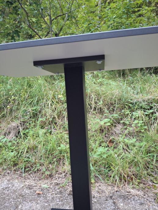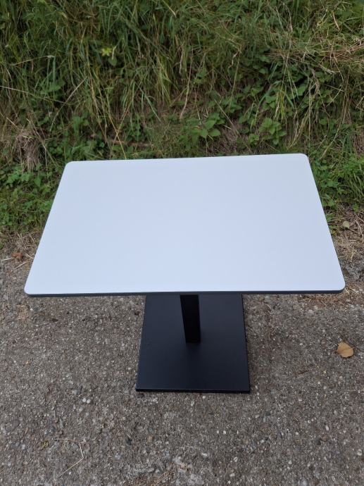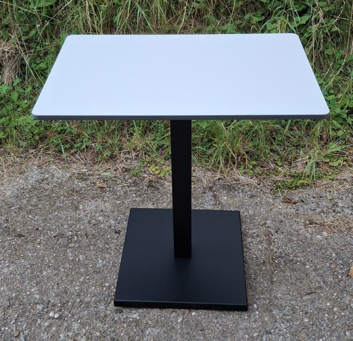 Stolovi za kafiće, 10 komada, novo, ploča stola kompakt dim. 69x45 cm pravokutna, svijetlo sive boje, debljine 13 mm. Postolje je metalna stopa dim. 42x42 cm s metalnom cijevi 6x6 cm plastificirano u crnu boju. Vrlo stabilno. Lako za održavanje. Odozdo regulirajuće noge. Pogodno za vanjsku upotrebu. Otporno na kišu, sunce, snijeg i sl. Težina oko 14 kg. Potpuno demontažno postolje, sve stane u običan auto. Za Zagreb, Karlovac i okolicu moguća gratis dostava. Za dalje moguća dostava uz placanje putem Intereurope, HP expresa ili sl. Cijena je 90 eura po komadu, VPC.