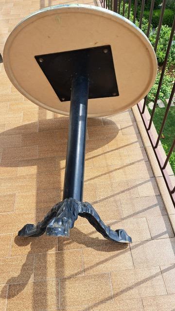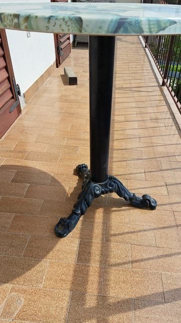 Stolovi metalne, lijevane, željezne konstrukcije s motivom školjki; dosta čvrsti, teški i stabilni. Promjer 70cm. Dostupno cca 15 komada. Cijena jednog stola je 80 EUR-a. Za sve informacije zvati dolje navedeni DODATNI broj.