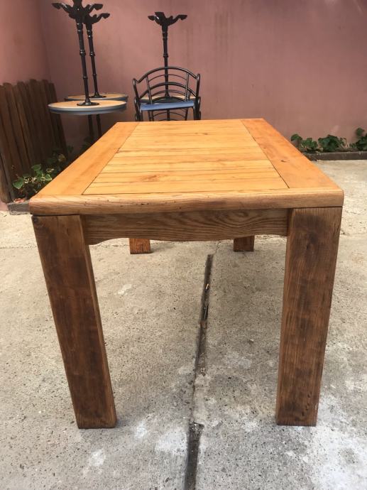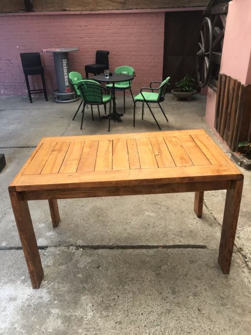 Masivni stol od hrastovine ( puno drvo ). Visine 68 cm. dužine 123 cm. i širine 75 cm.