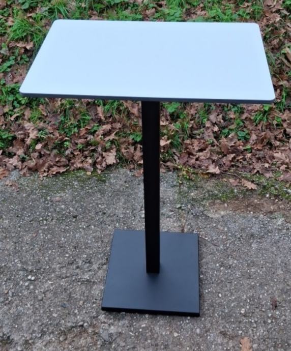 Stolovi barski visoki ugostiteljski, 8 komada, s pravokutnom pločom 69x45 cm kompakt dekor boja siva, debljine 13mm, s postoljem aluminijskim 42x42 cm, crno plastificirano, vrlo stabilno, težina cca 16 kg, potpuno rastavljivo radi lakšeg transporta, odozdo regulirajuće noge. Cijev 6x6 cm metalna cinčana. Cijena je VPC. R1 račun. Visina 114 cm. Idealno i za terase i za unutra, otporno na kišu, sunce i snijeg. Može se slati potpuno rastavljeno i zapakirano komadnom dostavom (Intereuropa, HP ekspres ili sl.) Rastavljeno stane i u auto. Moguća dostava za Zagreb, Karlovac i okolicu. Cijena 120 eura po komadu. Popust 10% ako se uzmu svi. Garancija!