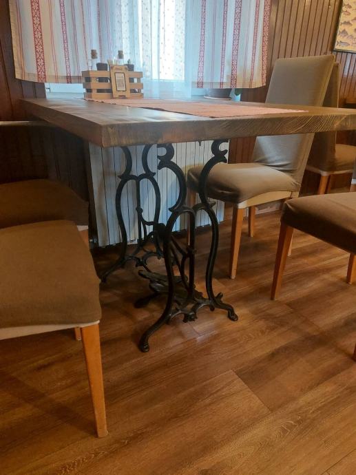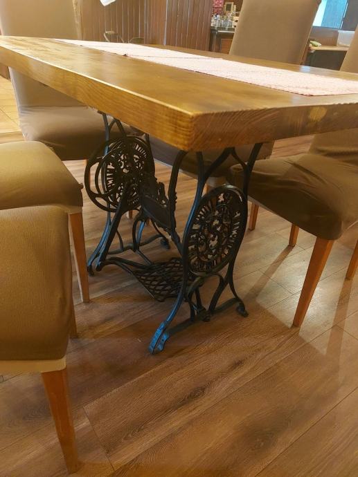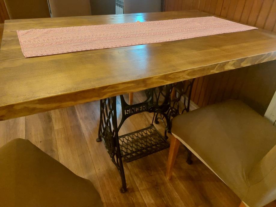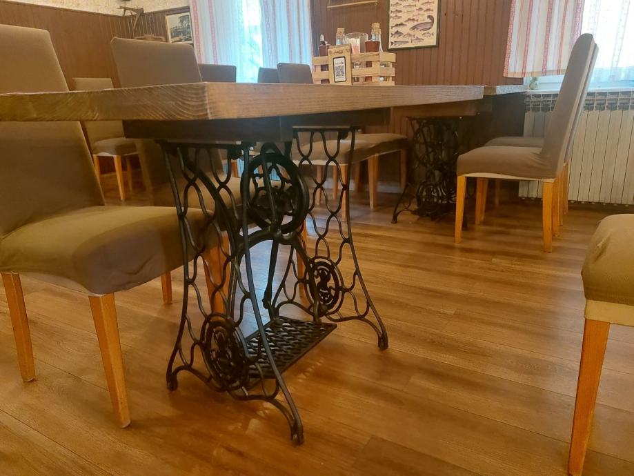 Stolovi na postolju od Singerice, daska jelova, debljine cca 4,5cm, 6komada dimenzija 120*80 i 2komada 80*80. Za sve informacije isključivo na broj 0 9 8 9 4 8 4 1 6 0.