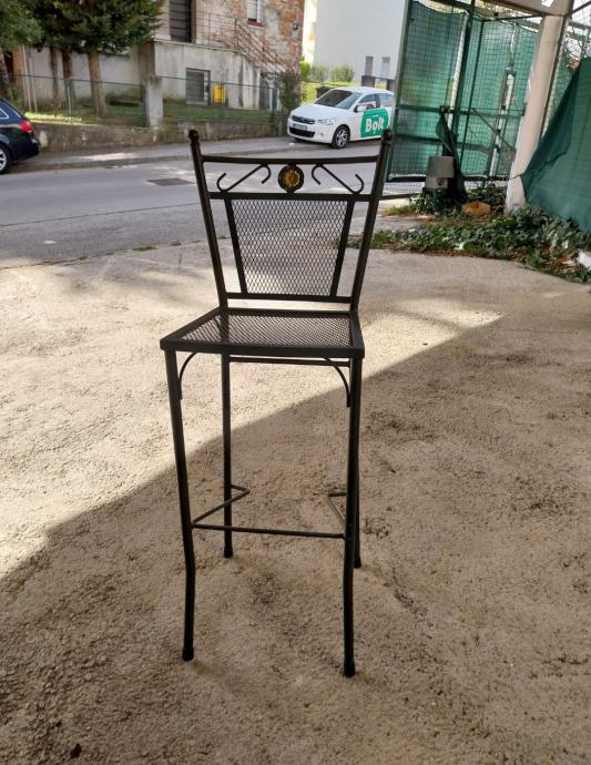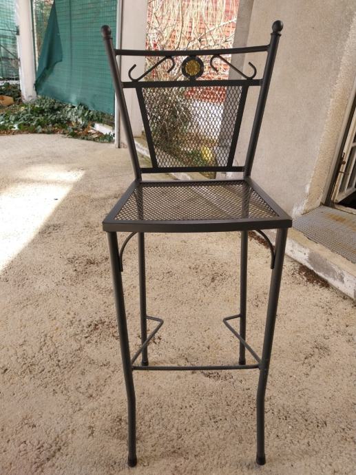 Visoki stol željezno postolje, mramorna ploča, fi 60. Stolice visoke kovano željezo, rađene po mjeri.
