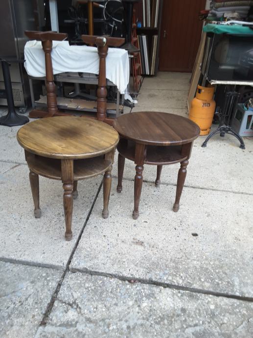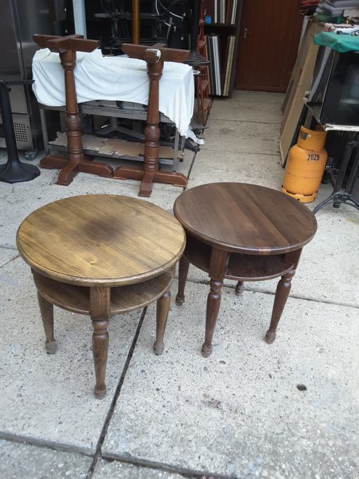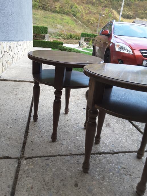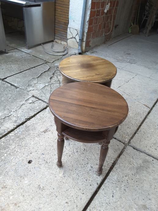 Stolovi iz naslova izrađeni od hrastovog masivnog drva korišteni ali jako očuvani i u super dobrom stanju čvrsti su i stabilni ništa se ne ljulja ni ne klima vrhunska izrada dimenzije stoliča visina 66 cm promjer ploče 55 cm hitno prodajem za 85 eura