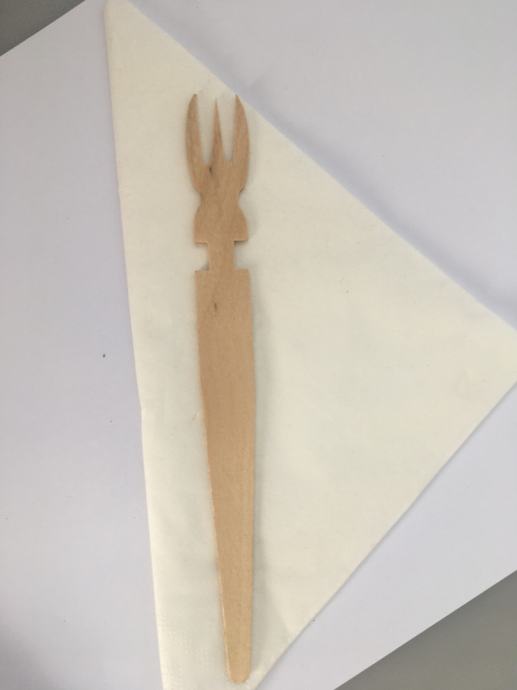 Jednokratni drveni pribor za jelo 3 u 1 ( vilica + nož = štapić za jelo ) novost je na tržištu jer se iz vilice i noža može dobiti štapić za jelo!