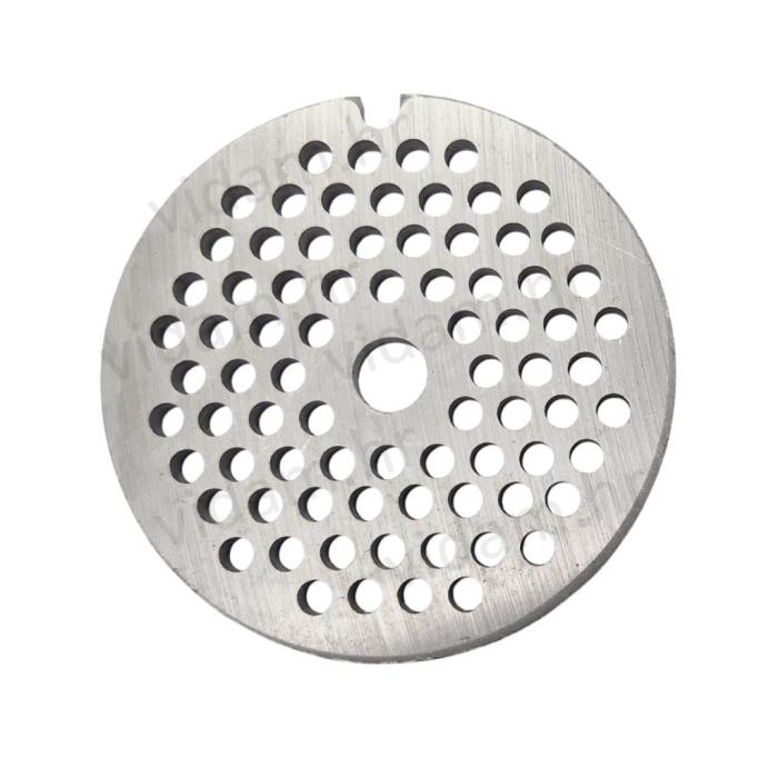 Profesionalna rezna ploča (šajba) za mesoreznicu veličine 22, izrađena od visokokvalitetnog čelika. Dostupna u promjerima rupa 6 mm, 8 mm i 10 mm. Idealna za mljevenje mesa, pripremu kobasica i kolinja. Odgovara većini mesoreznica standarda 22..Šaljemo proizvode u cijelu Hrvatsku dostavnim službama. Izdajemo E-račun tvrtkama. Jamstvo i servis osigurani. Posjetite naš webshop www.vidam.hr