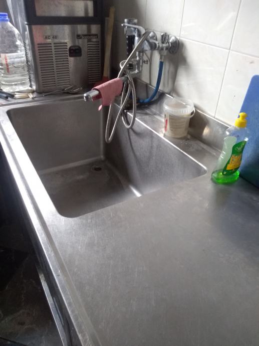 sudoper 160 x 70 cm sa koritom 80 x 50 x 37 cm uz koje je radna ploha ispod koje je prostor za stroj za pranje suđa;
