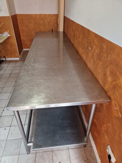 Prodajem inox radni stol s donjom policom. Masivna, stabilna konstrukcija, lako se čisti, idealno za profesionalne kuhinje, mesnice, pekare, radionice ili garaže. Stanje: rabljeno, potpuno funkcionalno, vidljivi samo tragovi korištenja (manje ogrebotine).