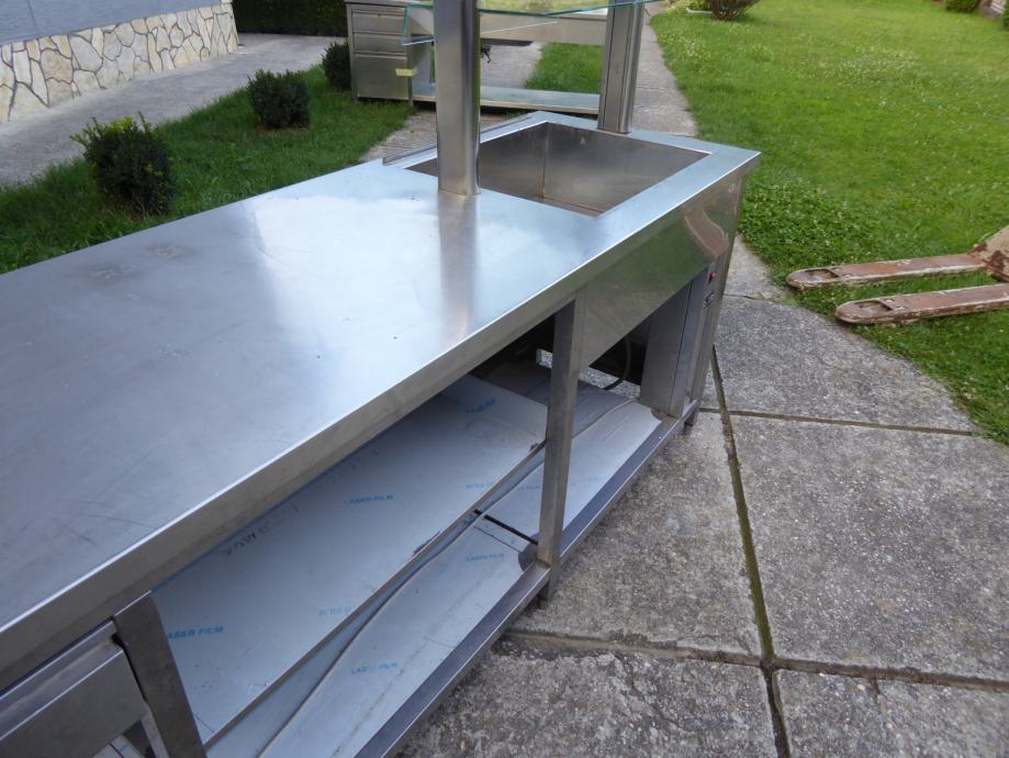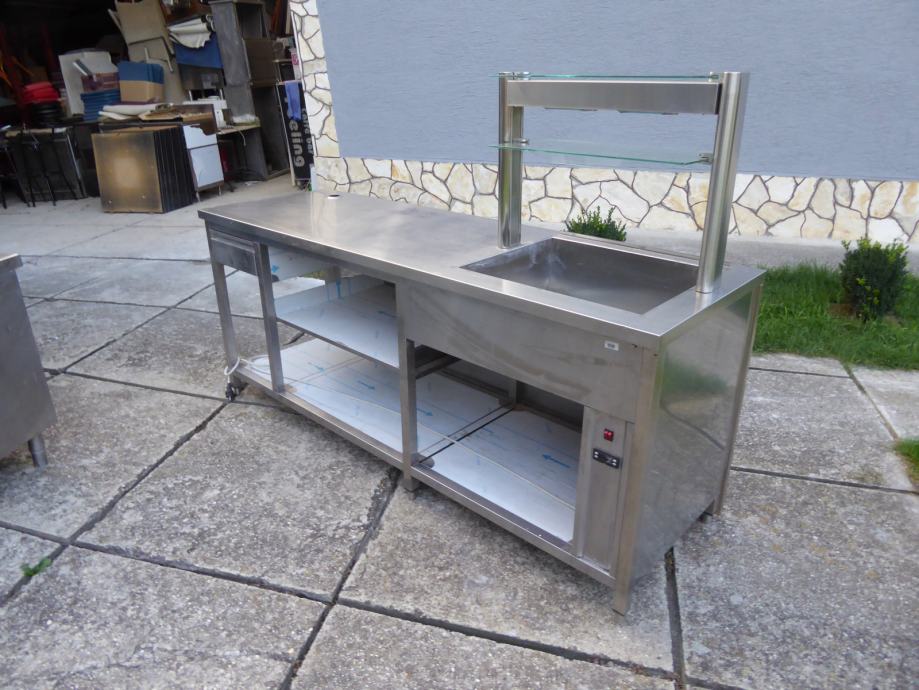 inox profi uslužni stol 220 x 70 cm sa lampa-grijačima i topla kupka 2